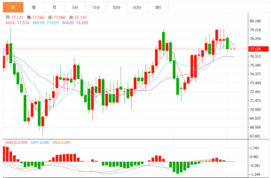 今天的预期交易范围:在79.30支撑位和79.30阻力位之间