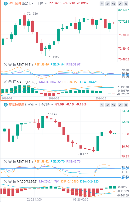红海地区持续的地缘政治紧张局势为原油价格提供支撑。具体而言,伊朗领导的胡塞武装以民用航运船只为目标,引发了人们对欧洲和亚洲之间供应线可能中断的担忧。因此,在市场参与者密切关注局势的情况下,原油将保持高位。截至目前,WTI原油报价77.34美元,Brent原油报价81.59美元。