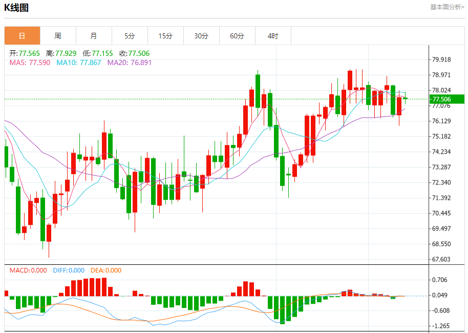 支撑位:77.20 76.80 76.35