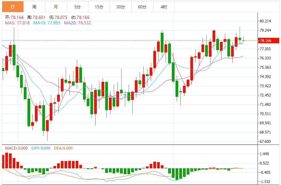 综合来看,原油今日操作思路上建议以回踩低多为主,反弹高空为辅,上方短期关注79.5.0-80.0一线阻力,下方短期关注77.5-77.0一线支撑。