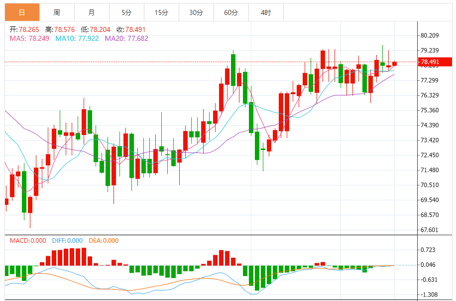 保持回调做多,综合来看,原油日内操作思路上建议上方短期关注79.0-80.0一线阻力,下方短期关注77.0-76.0一线支撑。