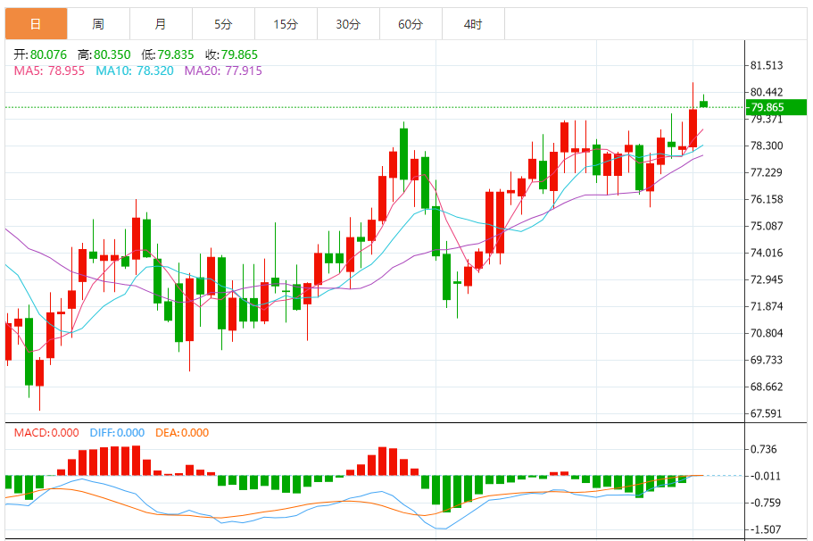 周一(3月4日),布伦特原油连续合约报83.73美元/桶,日内上涨0.18美元,涨幅0.22%。美原油连续合约站上80美元关口,为近4个月以来首次,报80.40美元/桶,日内上涨0.28美元,涨幅0.35%。以沙特阿拉伯和俄罗斯为首的OPEC+成员国周日同意,将自愿减产220万桶/日的协议延长至第二季度,在市场对全球经济增长和OPEC以外国家产量上升感到担忧之际,此举为市场提供了额外支撑。