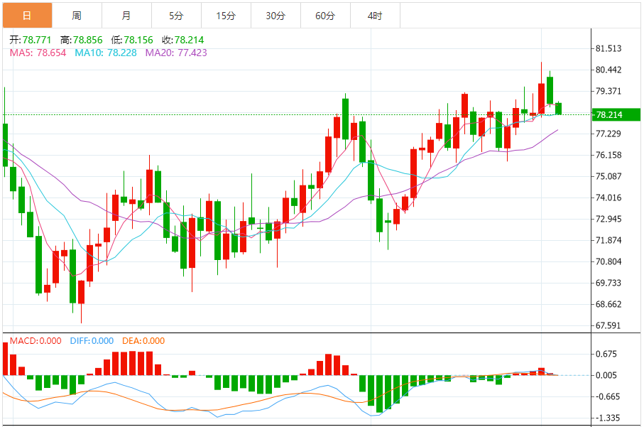 鉴于昨日美油收阴给短线市场造成负面影响,但中线级别看涨条件还在,所以日内美油走势可能会以消化震荡为主,上方关注79争夺,今日能否回到79上方,尤其是回到79.5上方,对于后期市场情绪的影响是比较大的。日内下方则着重关注77一线争夺,此位不破就继续保留中线级别的看涨预期。综合来看,原油短期操作思路上建议上方短期关注80.0-81.0一线阻力,下方短期关注77.0-76.0一线支撑。