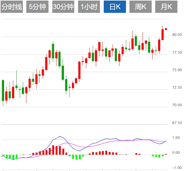 今天的预期交易范围在79.60支撑和82.70阻力之间。