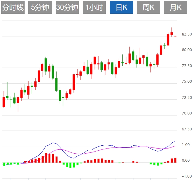 原油价格面临82.80美元水平附近的阻力。下一个主要阻力位于83.00美元区域,如果上破该水平,价格可能会加速上涨。如果涨势继续,价格可能测试85.00美元的阻力位。