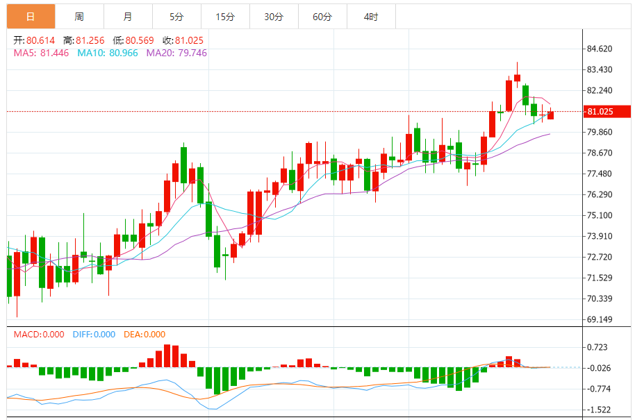 今天的预期交易范围:在80.00美元支撑位和83.00美元阻力位之间