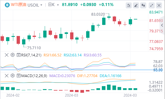 3月26日,周二亚市早盘,原油交投于82.00美元附近。由于美元走软以及中东和东欧地缘政治紧张局势再度加剧,加剧了对供应中断的担忧,WTI价格小幅走高。