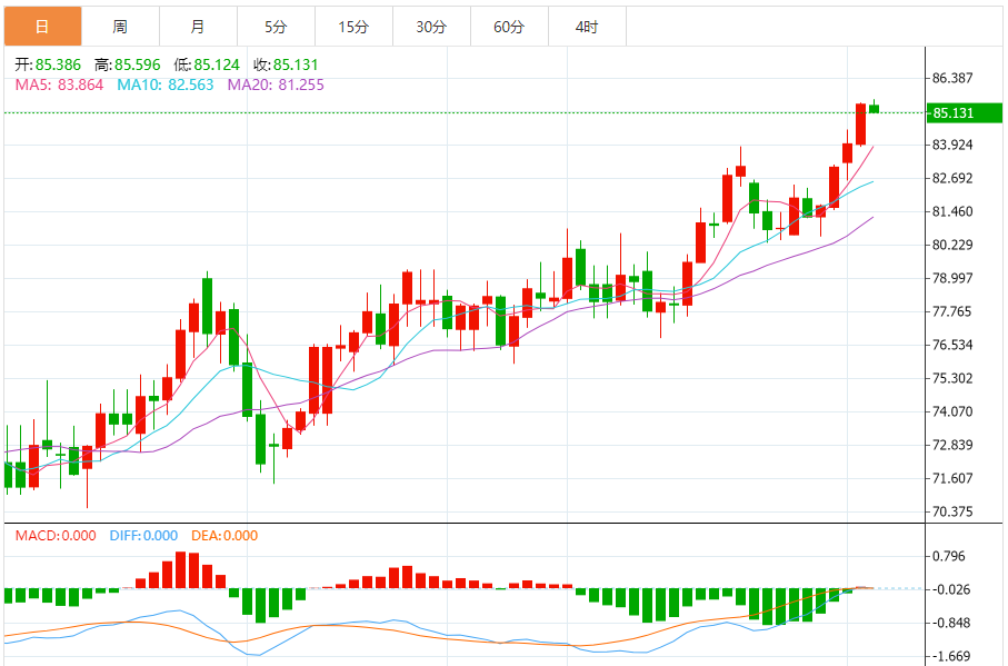 4月3日,WTI 5月原油期货收涨1.44美元,涨幅1.72%,报85.15美元/桶。创2023年10月以来新高。NYMEX 5月天然气期货收涨1.36%,报1.8620美元/百万英热单位。布伦特6月原油期货收涨1.50美元,涨幅1.72%,报88.92美元/桶。