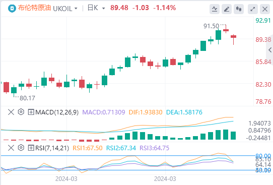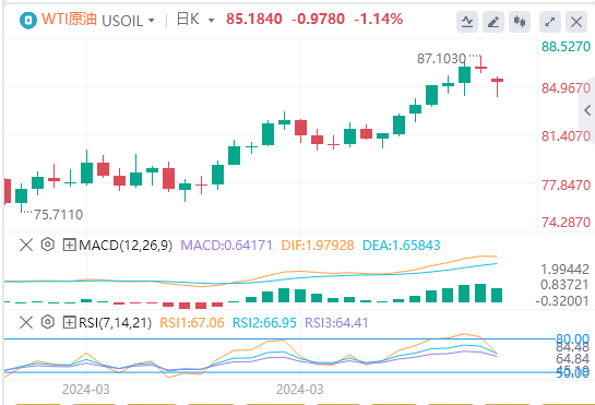 WTI油价周一开盘走出看跌缺口,从上周五触及的五个多月高位进一步回落。不过,WTI油价收窄亚洲时段的部分跌幅,截至目前,WTI原油报价85.18美元,Brent原油报价89.48美元。