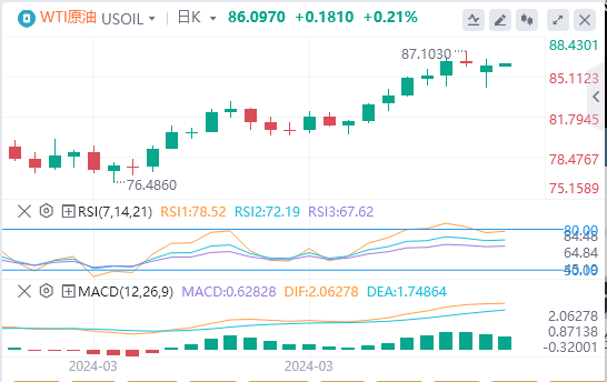 4月9日,周二亚市早盘,原油交投于86.09美元附近。美元走软和中东冲突持续的地缘政治紧张局势引发了对原油供应中断的担忧,推动WTI价格接近六个月高点。