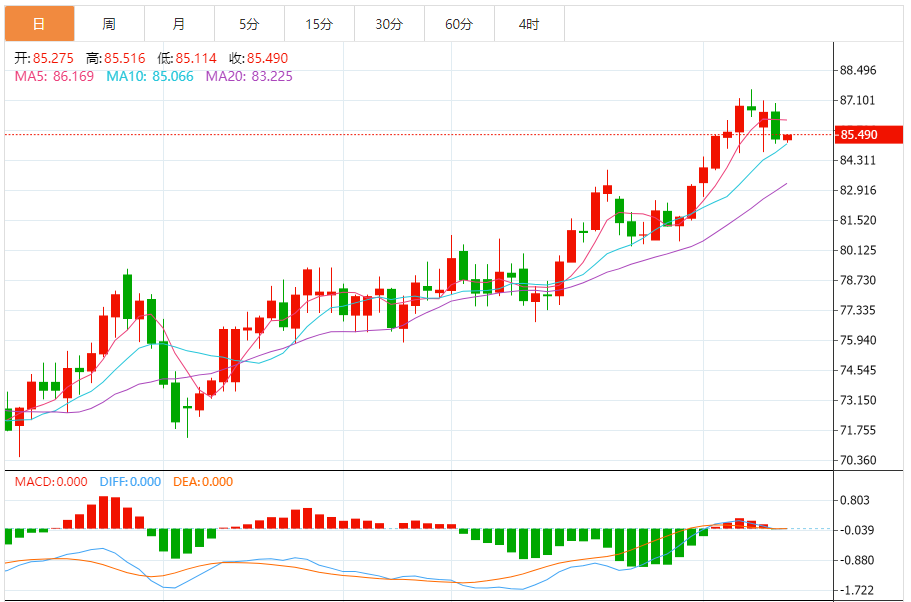 今天的预期交易范围:在83.70美元支撑位和86.70美元阻力位之间