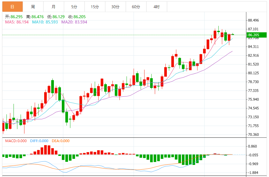 预期交易范围:在85.20美元支撑位和88.25美元阻力位之间。