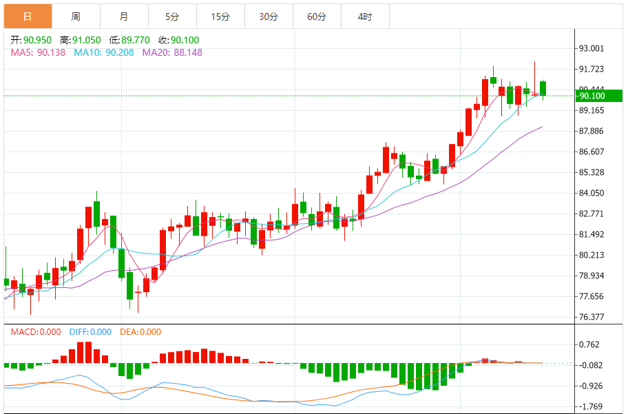 亚洲市场早盘,油价小幅走低。全球基准布油期货周一(4月15日)下跌0.31%,至每桶90.17美元,美国WTI原油期货下跌0.44%,至每桶85.28美元。