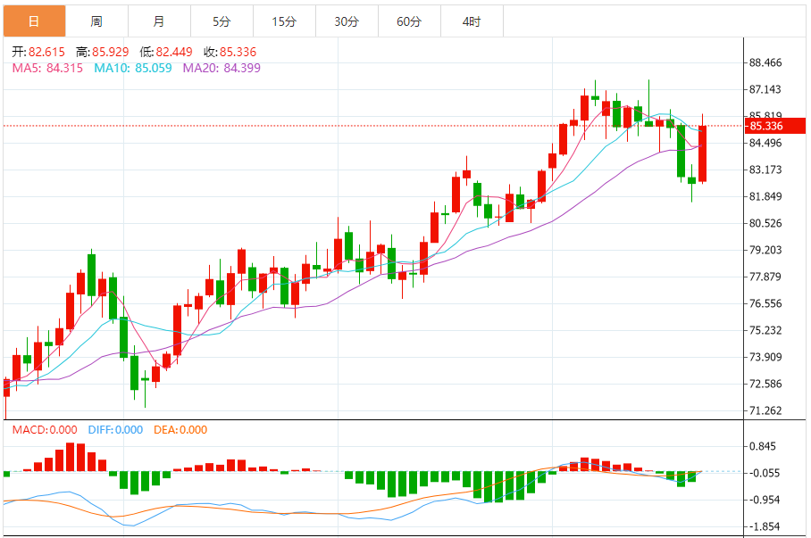 周五(4月19日),美原油价格交投于85.361美元/桶附近,涨幅为3.46%。油价周四继续回落,从年内高点最大回撤6美元左右,基本回吐了3月底地缘溢价带来的涨幅。
