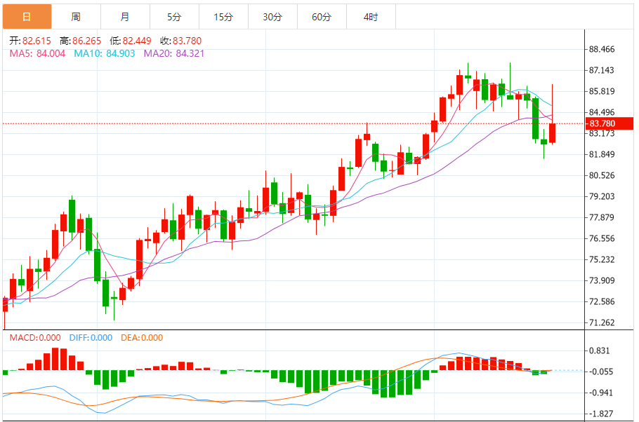 今天的预期交易范围:在84.00美元支撑位和87.00美元阻力位之间。
