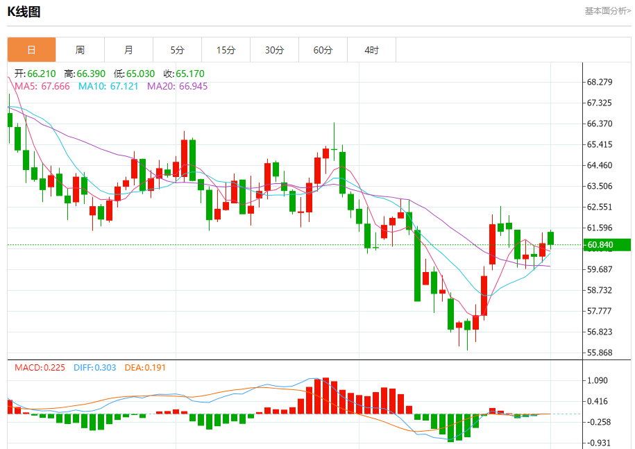周一(11月3日),美原油价格交投于61.410美元/桶附近,涨幅为0.71%。