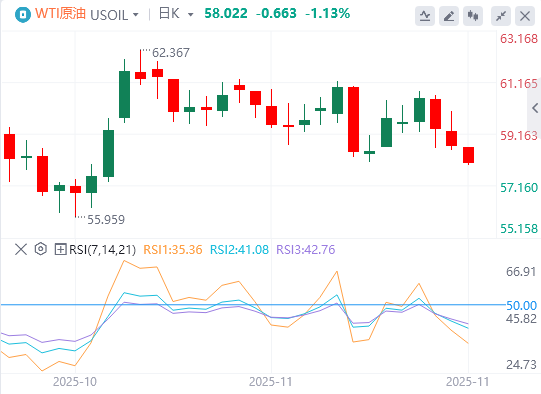 随着乌克兰-俄罗斯紧张局势缓解,降低了对俄罗斯石油制裁减少的可能性,原油价格下滑,可能会提升全球供应。 本周市场情绪转为看跌,华盛顿推动和平计划以结束三年的冲突。截至目前,WTI原油报价58.02美元,Brent原油报价62.02美元。
