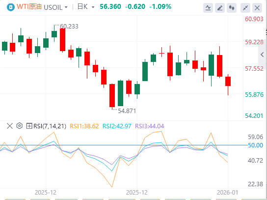 1月7日,周三亚市早盘,原油交投56.36附近。