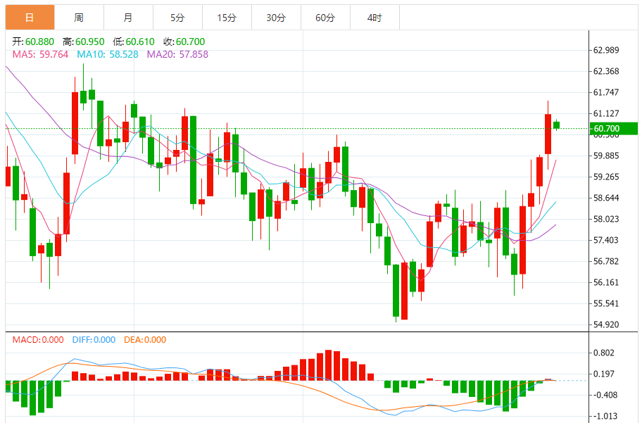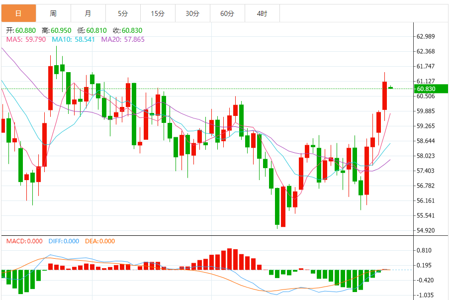 纽约市场2月WTI原油期货上涨2.8%,收于每桶61.15美元。