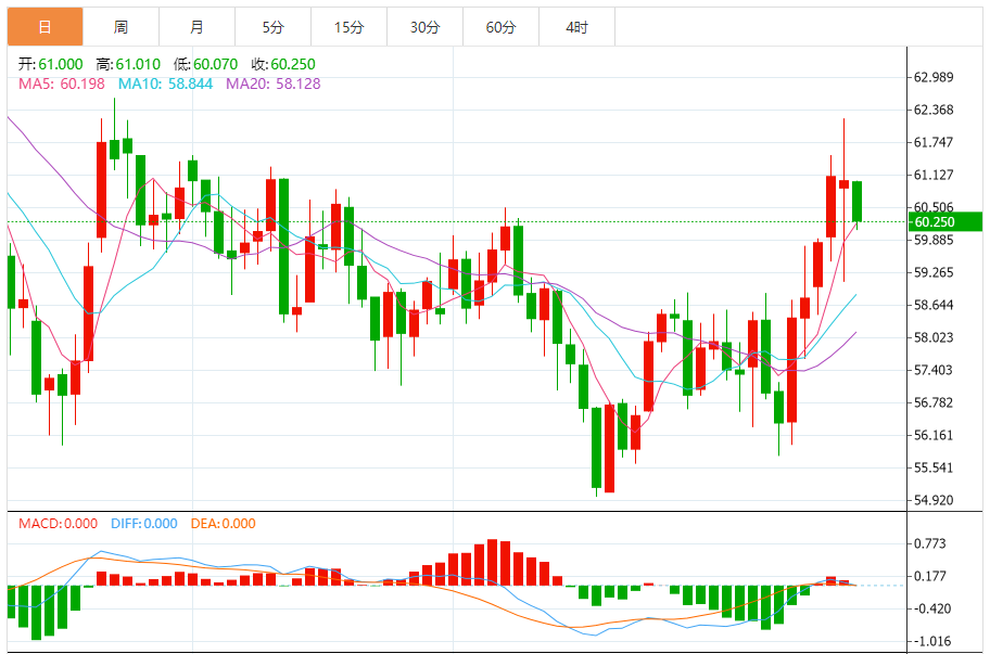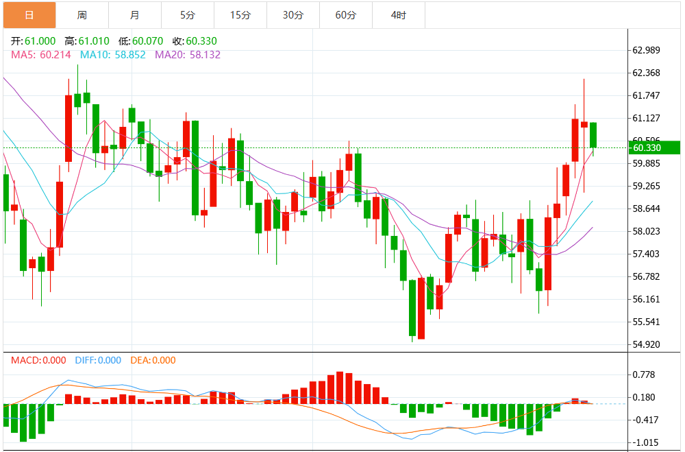 周四(1月15日),美原油价格震荡下行,日内跌幅约2.5%,现交投于每桶60.35美元附近,因基本面供应压力持续。前一交易日油价上演过山车行情,日内振幅5.11%,因市场担忧伊朗原油供应遭破坏而上涨,而后因伊朗镇压行为减弱而回落,一度触及62.20美元的近三个月高点。