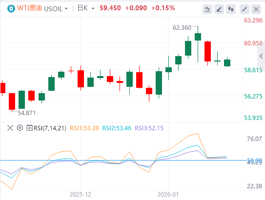 原油(WTI)美国原油价格从58.70美元区间反弹,该区为亚洲盘中触及的一周低点,填补了周一空头开盘的大部分空缺。截至目前,WTI原油报价59.45美元,Brent原油报价64.19美元。