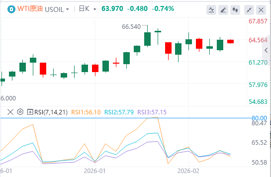 2月10日,周二亚市盘中,原油交易价格约为63.97美元。随着中东供应中断担忧的消退,WTI价格下跌。交易员们正准备迎接美国石油协会(API)每周报告的发布,该报告将于周二晚些时候发布。