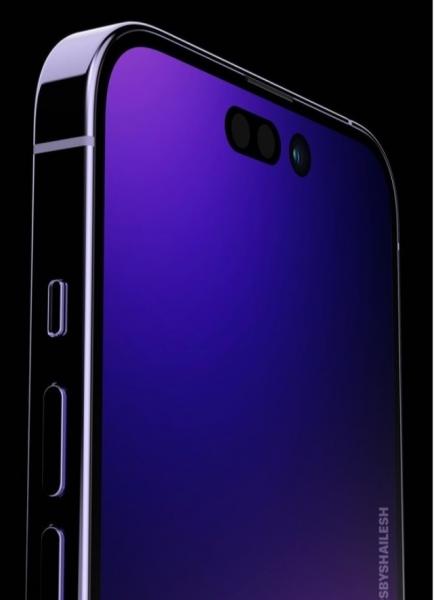 渲染图显示,紫色iPhone 14 Pro正面为双挖孔设计,中框和背部均为紫色,后置三颗摄像头,排列方式与上一代基本一致。由于新配色的加入,紫色版本的iPhone 14 Pro能够让然一眼看出你换了新手机。