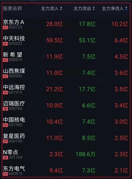 资金净流入十大人气热股: