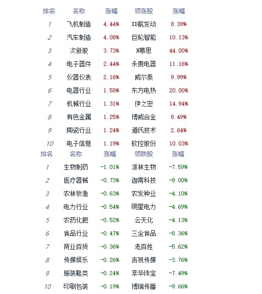 今日早盘,A股三大指数高开,随后下探回升,创业板指涨超1%。盘面上,汽车产业链、航空发动机、房地产服务板块涨幅居前,医药商业、转基因、教育板块跌幅居前。