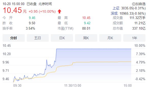 重要资讯:深交所2022年10月20日交易公开信息显示,中国长城因属于当日涨幅偏离值达7%的证券而登上龙虎榜。中国长城当日报收10.45元,涨跌幅为10.00%,偏离值达10.51%,换手率3.54%,振幅10.84%,成交额11.21亿元。