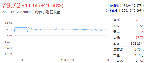 重要资讯:深交所2022年12月12日交易公开信息显示,欧克科技因属于无价格涨跌幅限制的证券而登上龙虎榜。欧克科技当日报收79.72元,涨跌幅为21.56%,换手率48.10%,振幅24.00%,成交额6.70亿元。