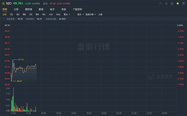截至发稿,蔚来盘前跌4.7%。