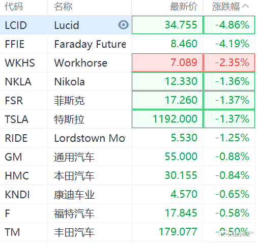 美股新能源车股多数走低,特斯拉跌逾1%,该股昨日收涨8.49%再创历史新高;Lucid Group、法拉第未来跌逾4%,Nikola、Lordstown Motors跌逾1%;蔚来、法拉利逆势涨近2%,小鹏汽车、小牛电动小幅上涨。特斯拉CEO马斯克此前表示:“尚未与赫兹租车公司签署合约,赫兹订单对我们的经济影响为零。”此外,大摩分析师亚当-乔纳斯表示,在蓬勃发展的电动汽车行业里,他最看好的股票实际上是法拉利,而不是最近炙手可热的特斯拉。法拉利预计将在2025年开始销售电动汽车。乔纳斯预计,到2030年,法拉利的电动汽车将占其汽车总销量的30%以上,给予该股的12个月目标价为265美元。