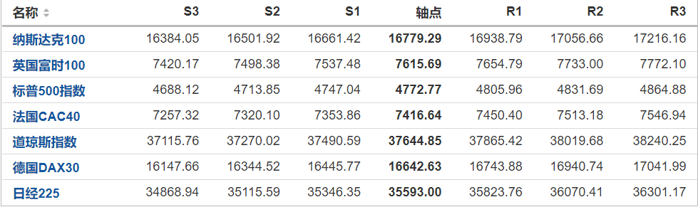 今日纳斯达克、标普、道琼斯等指数产品阻力支撑位预测(2024/1/15)