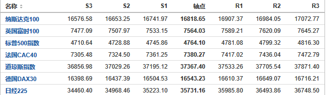 今日纳斯达克、标普、道琼斯等指数产品阻力支撑位预测(2024/1/18)
