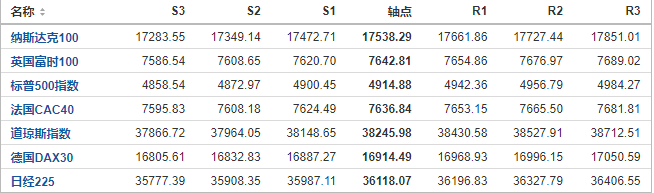 今日纳斯达克、标普、道琼斯等指数产品阻力支撑位预测(2024/1/31)