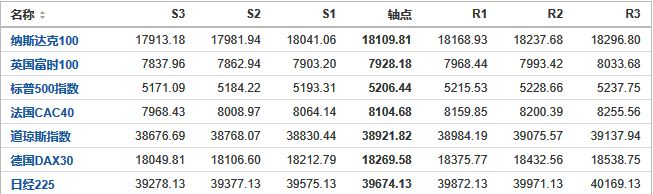 今日纳斯达克、标普、道琼斯等指数产品阻力支撑位预测(2024/4/10)