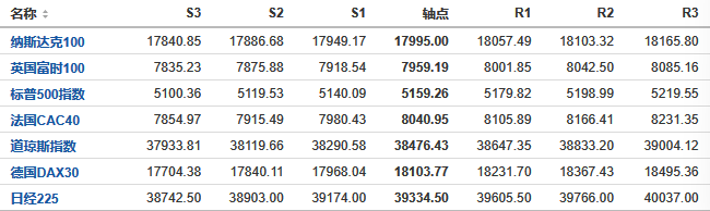 今日纳斯达克、标普、道琼斯等指数产品阻力支撑位预测(2024/4/12)