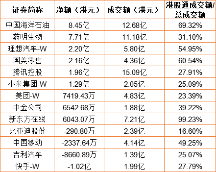 亚汇网9月14日港股通数据统计显示:中国海洋石油净买入额居首,达8.45亿港元,快手-W净卖出额居第一位。(亚汇网编辑:陌尘)