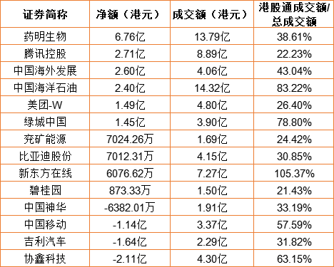 亚汇网9月15日港股通数据统计显示:药明生物净买入额居首,达6.76亿港元,协鑫科技净卖出额居第一位。(亚汇网编辑:陌尘)