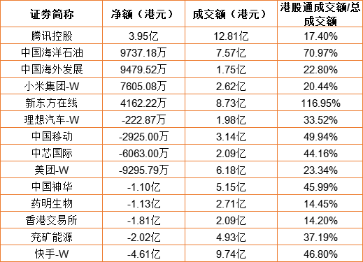 亚汇网9月16日港股通数据统计显示:腾讯控股净买入额居首,达3.95亿港元,快手-W净卖出额居第一位。(亚汇网编辑:陌尘)