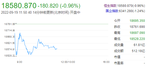 截至午盘,恒生指数跌0.96%,报18580.87点;国企指数跌1.24%,红筹指数跌1.01%。恒生科技指数跌超2%,商汤跌6.5%,蔚来跌超6%,哔哩哔哩跌4.47%。