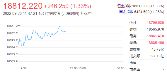 今日港股高开高走,截至午盘,恒生指数涨1.33%,报18812.22点;国企指数涨1.36%,红筹指数涨0.54%。恒生科技指数走高,携程集团涨6%,网易涨超5%,阿里涨近4%。