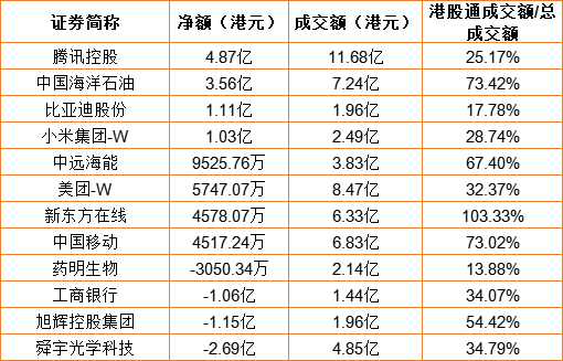 亚汇网9月21日港股通数据统计显示:腾讯控股净买入额居首,达4.87亿港元,舜宇光学科技净卖出额居第一位。(亚汇网编辑:陌尘)