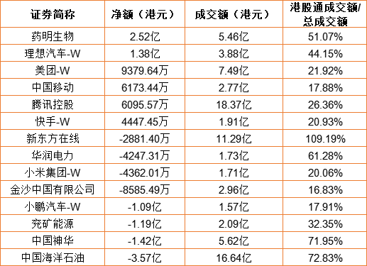 亚汇网9月26日港股通数据统计显示:药明生物净买入额居首,达2.52亿港元,中国海洋石油净卖出额居第一位。(亚汇网编辑:陌尘)