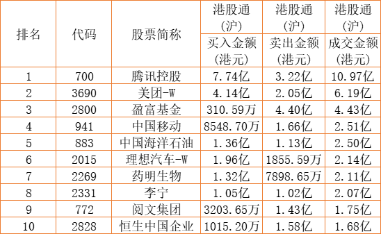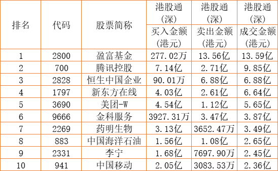亚汇网实时数据统计:截至9月27日收盘,腾讯控股、美团-W、盈富基金位居港股通(沪)成交前三,盈富基金、腾讯控股、恒生中国企业位居股通(深)成交前三。