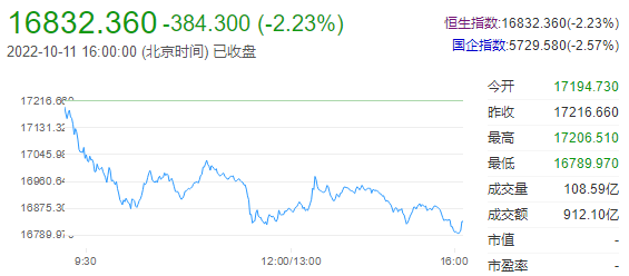港股四日连跌。截至收盘,主要指数集体下挫超2%,恒生指数跌2.41%,报收16801.24点;科技指数跌3.76%,报收3271.21点;国企指数跌2.77%,报收5718.07点。港股后市展望:中信建投分析指出,从当前市场环境与4月底对比来看,当前困扰市场的负面因素并未达到或者超越4月底。4月底多重利空冲击,当时国内方面市场主要担忧疫情后业绩大幅下滑,而海外方面俄乌冲突下油价极致推高下的全球通胀以及美联储的加息,美联储开始进入加息周期导致人民币大幅贬值。当前并无太多新利空因素,程度也较4月底更弱,从回撤比例和调整天数看也已接近或超过前几轮水平,回撤幅度足够。