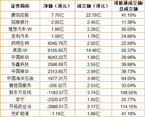 亚汇网10月13日港股通数据统计显示:腾讯控股净买入额居首,达7.70亿港元,兖矿能源(600188)净卖出额居第一位。(亚汇网编辑:陌尘)