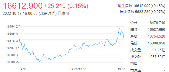 恒指收涨0.15%,报16612.90点;恒生科技指数跌幅收窄至0.20%,报3200.12点;医美概念、医疗器械板块走高,教育板块、回港中概股走低,百度、蔚来跌超5%;润歌互动上市首日收涨110%,报1.35港元每股。港股后市展望:中信证券表示,综合基本面、流动性、外围风险等多重因素来看,判断四季度在国内疫情状况或有所好转,经济改善信号已现,稳增长政策持续发力的背景下,港股基本面下修趋势将告一段落。尤其中报披露结束后,港股各板块盈利增速预期已基本回调到位。尤其考虑当前港股相对美股的估值水平已明显低于均值以下一倍标准差,港股已极具估值性价比。