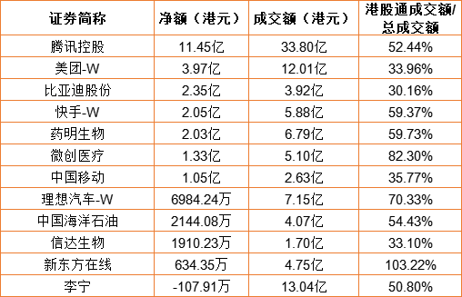 亚汇网10月17日港股通数据统计显示:腾讯控股净买入额居首,达11.37亿港元,新东方在线净卖出额居第一位。(亚汇网编辑:陌尘)